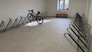 - 14 parkovacích míst s integrovaným nabíjením elektrokol
